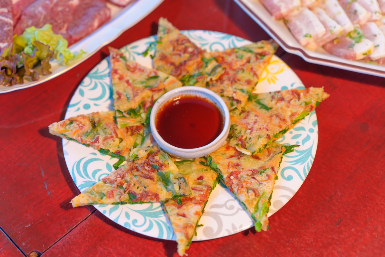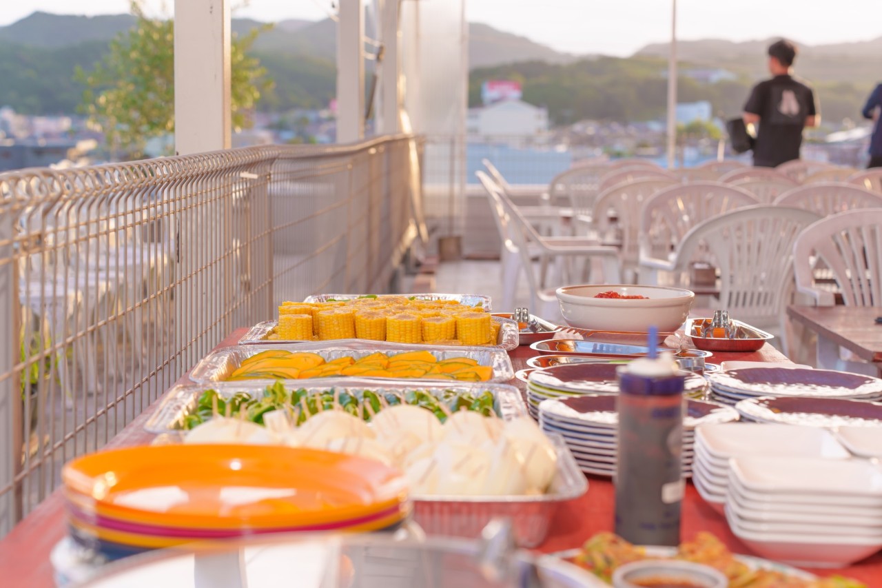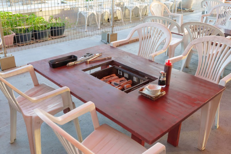 テーブルの中心に焼き台を設置。みんなで火を囲んでワイワイ楽しめる、快適なBBQ空間です。