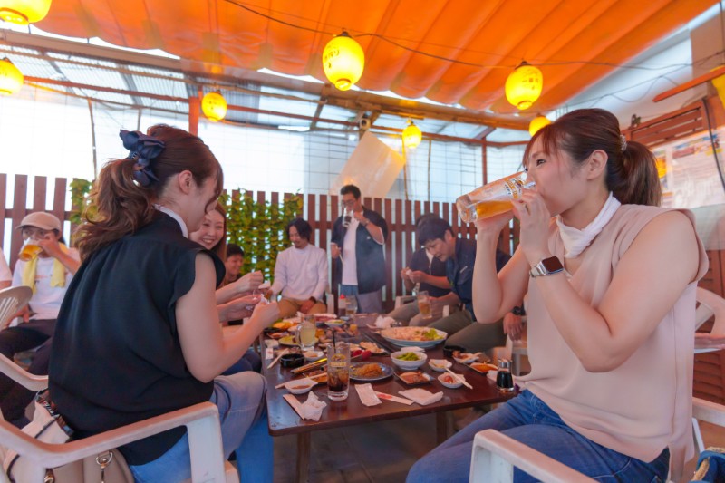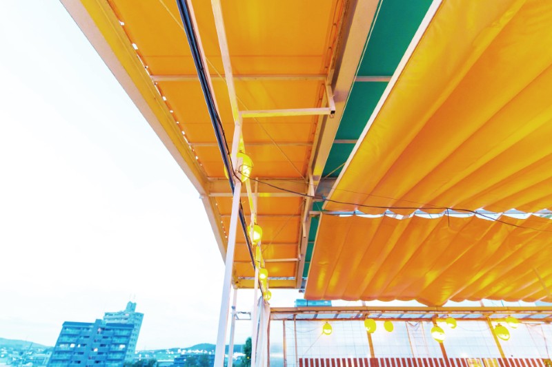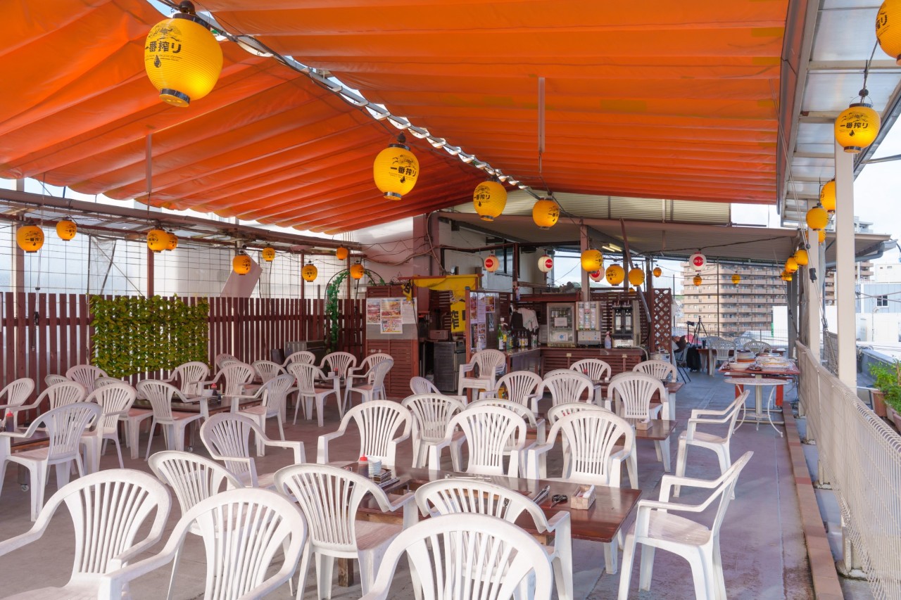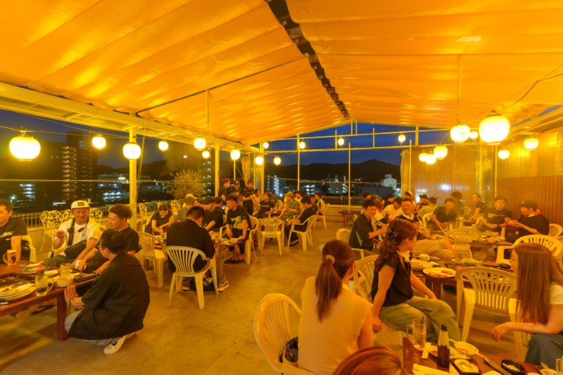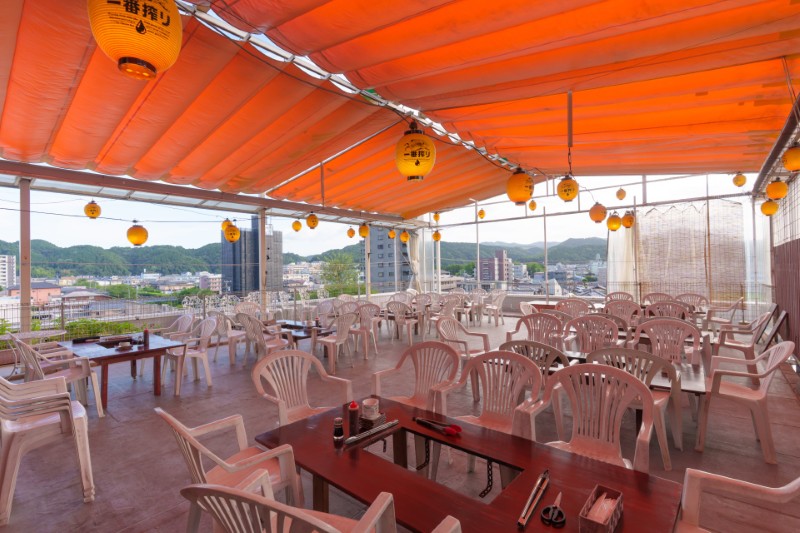 当店のビアガーデンは、開閉可能な屋根を備えているため、天候に左右されずにお楽みいただけます!